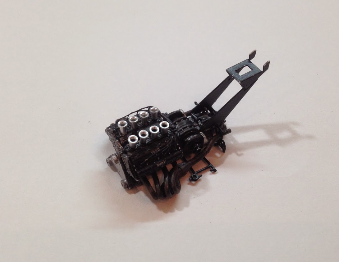 El color base del bloque motor que he utilizado es un aluminio de AlcladII, la caja de velocidades en color gris metálico de Tamiya, y las tapas de culata en negro satinado, también de Tamiya.